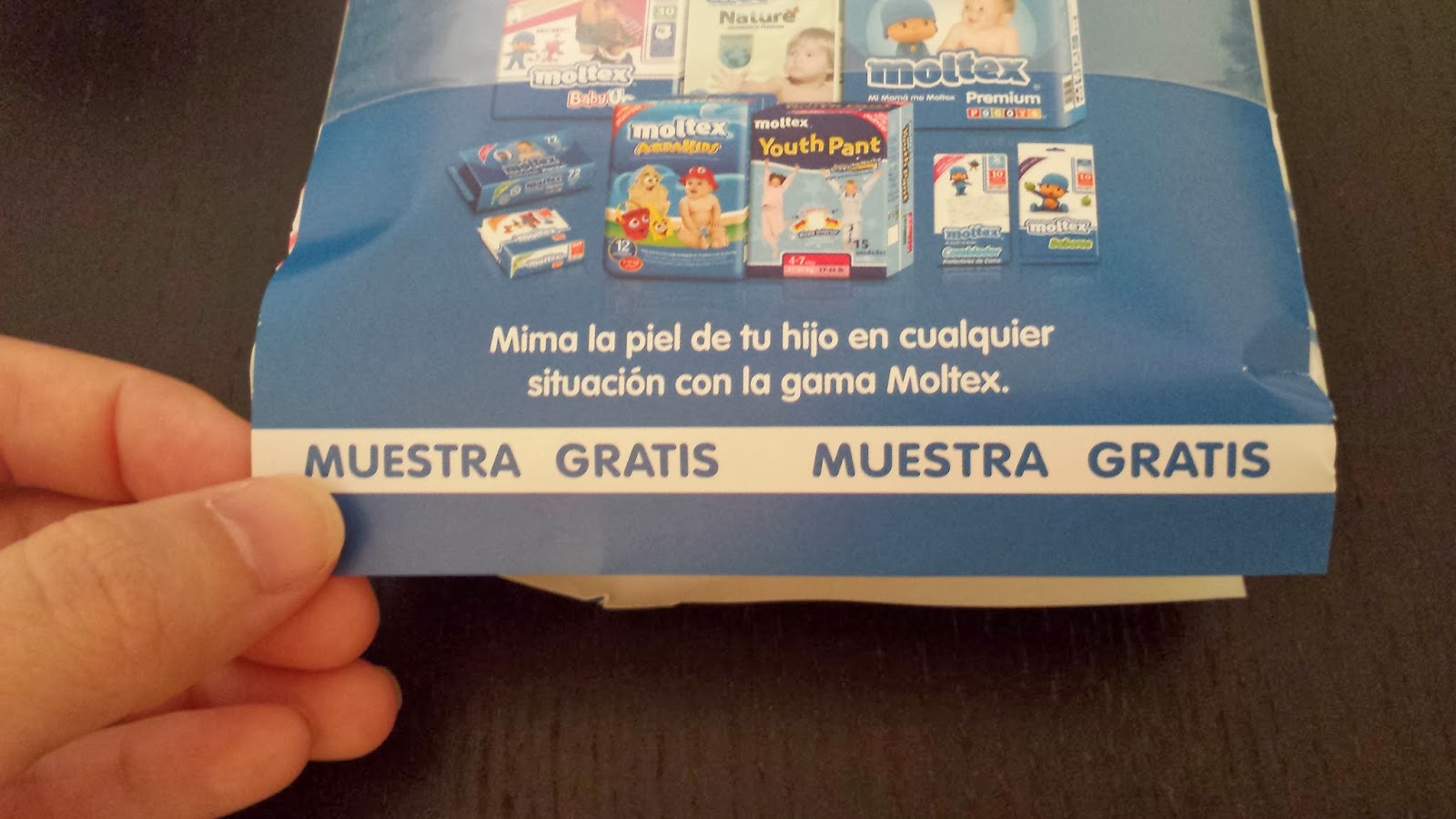 - Cambiador Moltex, me gustan bastante, pero solo por ser «específicos de bebe» son mas caros que un paquete normal de empapadores, que al final hacen la misma función, aun así si que parecen algo mas gorditos y suaves que un empapador normal. Viene como un producto mas de la caja, aunque no se como tomarlo, ya que en el paquete pone claramente, «muestra gratuita», así que, siendo la caja de pago, no debería constar como tal. Ademas en la web y en el Facebook de Nonabox han colgado fotografías de un paquete de 10 cambiadores, mientras en la caja viene en realidad uno de 4.